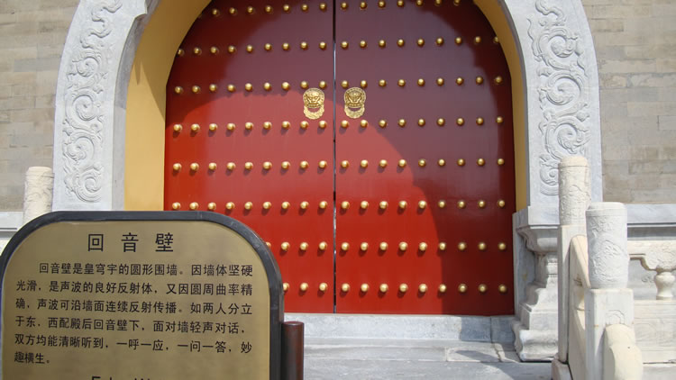 教科书上有文章说明的的著名地点,能够隔很远说话,古代利用声学特性所建的著名建筑,另一处也在天坛,是皇帝祭天讲话的圜丘。 |
